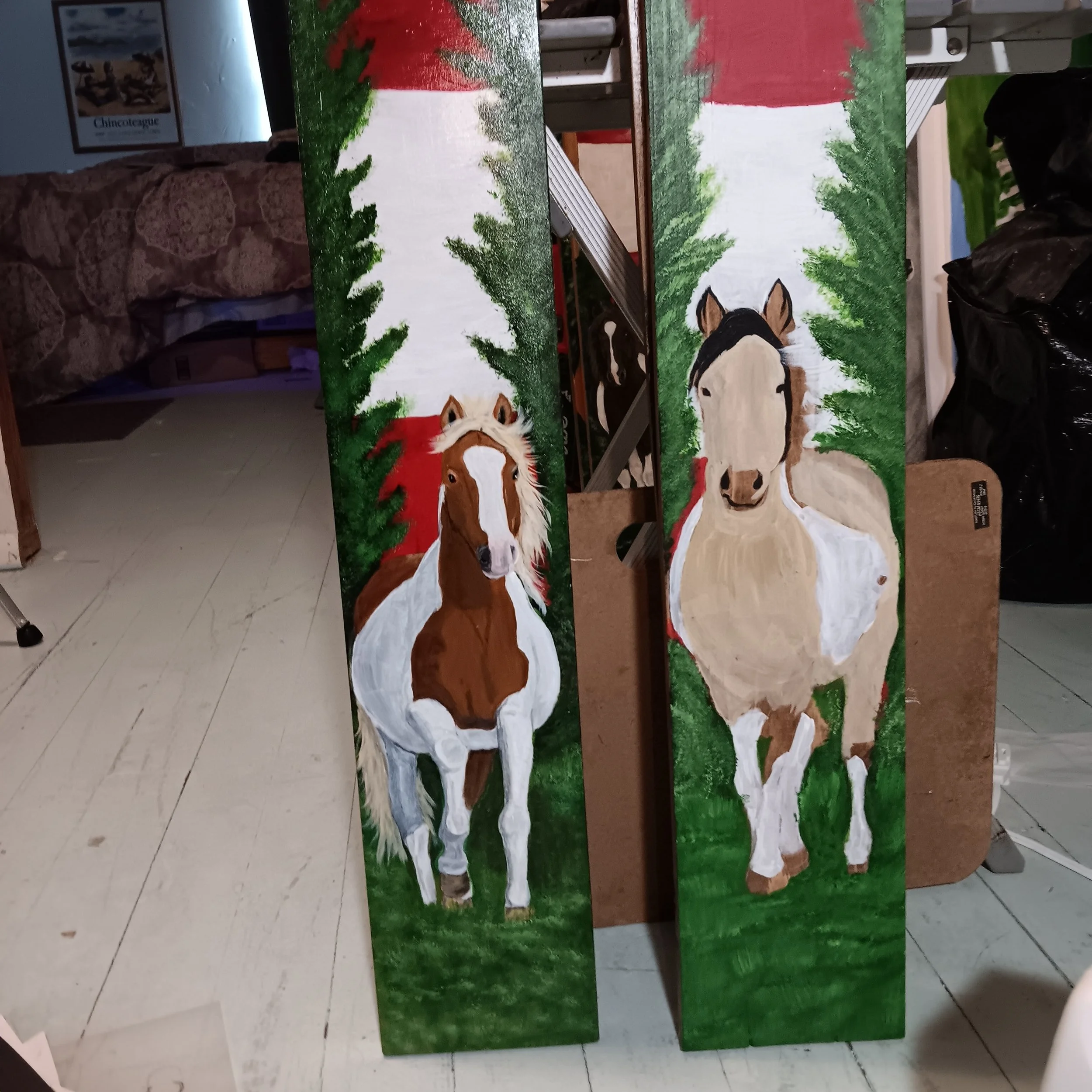 This handpainted acrylic on a 4’ x 6” leaning board, features Chincoteague pony stallion, Don Leonard Stud Ii. Each board is sealed with a UV protectant to prevent fading.